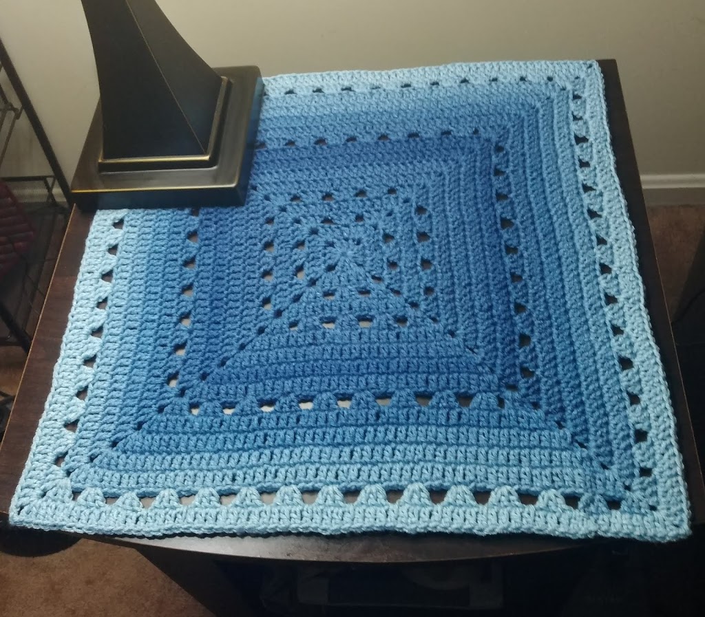 Dot’s Square is a combination of the traditional granny square with a solid granny square and is a variation on the original Grannies Square. The square can be made as small or as large as desired due to repeating rounds.
